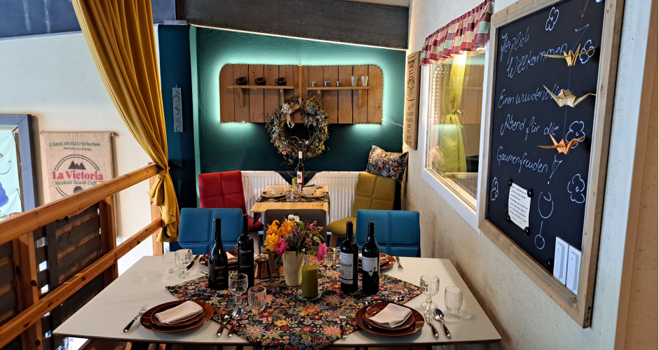 Raffinierte Müritz-Fisch Spezialitäten und außergewöhnliche georgische Weißweine, modern und traditionell interpretiert. Mit regionalen Beilagen serviert, dazu Wasser und anschließend türkischem Mokka.